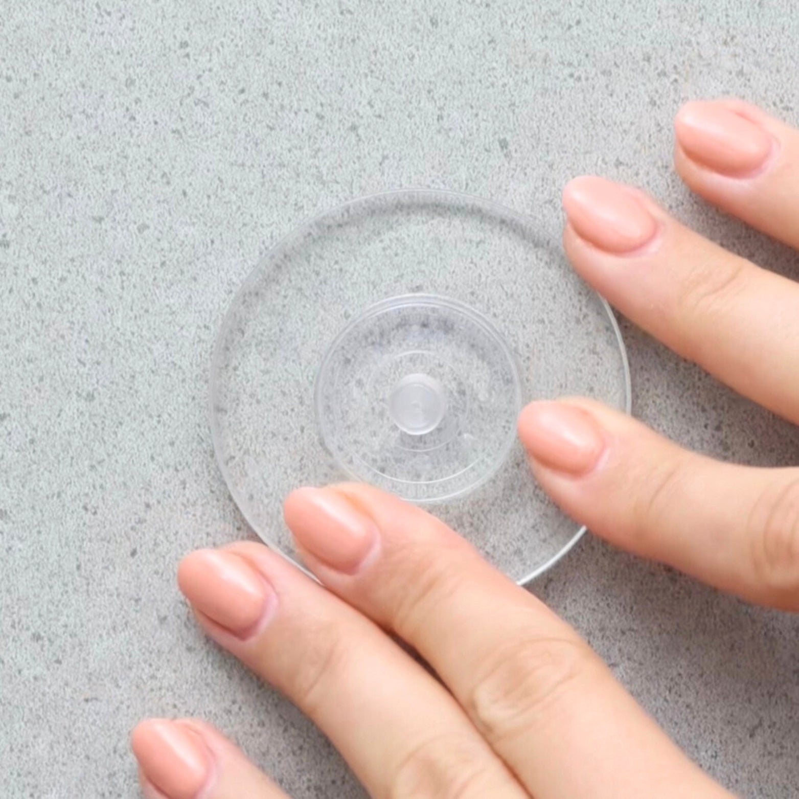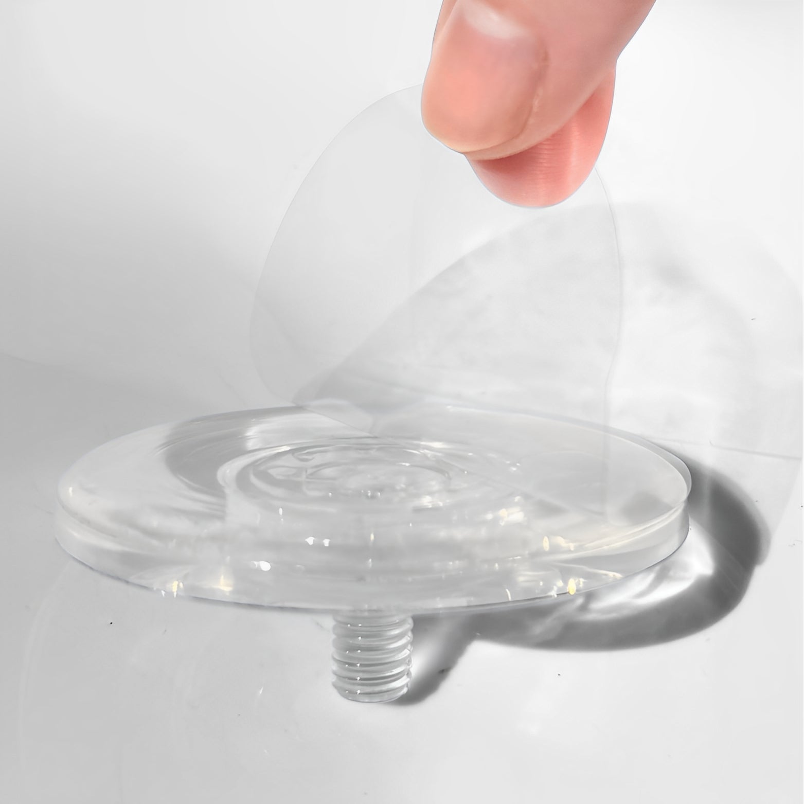 Peel off the plastic film from the suction cup, to reveal the no-residue adhesive surface.